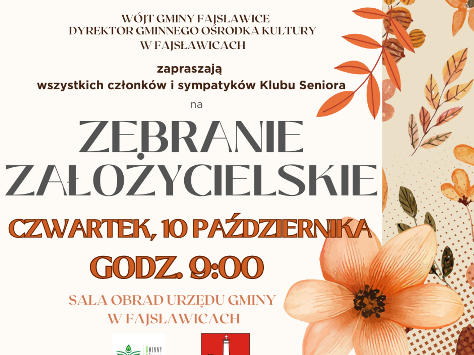 W imieniu Klubu Seniora, zapraszamy seniorów na ZEBRANIE ZAŁOŻYCIELSKIE 10.10.2024 r. ![]()