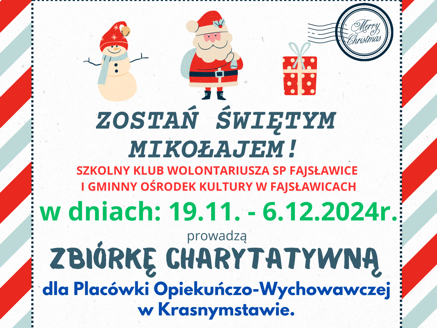 Zachęcamy do aktywnego współudziału w zbiórce charytatywnej SZKOLNEGO KLUBU WOLONTARIUSZA SP FAJSŁAWICE oraz GOK FAJSŁAWICE na rzecz dzieci i młodzieży ![]()