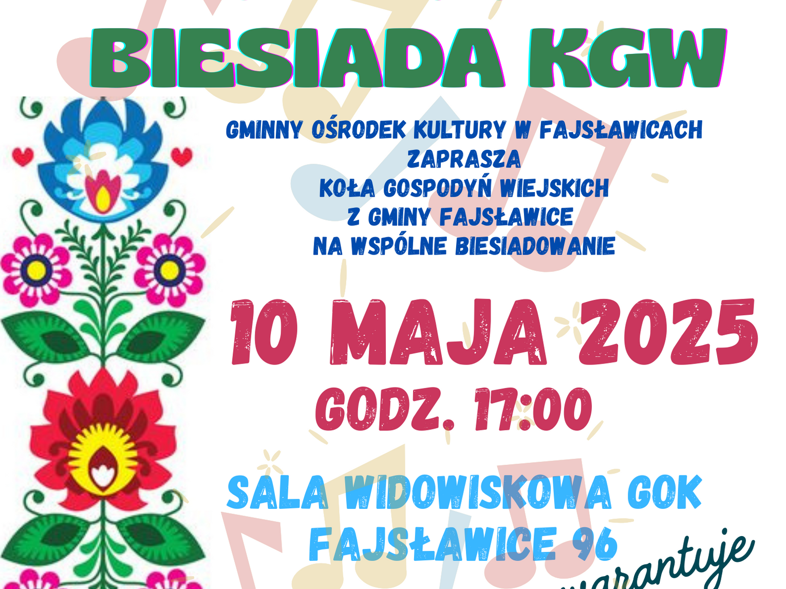 Gminny Ośrodek Kultury w Fajsławicach serdecznie zaprasza Gminne Stowarzyszenie Aktywnych Kobiet w Fajsławicach, KGW w Marysinie "Kreatywne Marysieńki", KGW Niezłe Ziółka w Boniewie, KGW RAZEM LEPIEJ na wyjątkowe wydarzenie pełne smaku, muzyki i dobrej zabawy! 💐🍰🥟 Wstęp dla członków KGW z terenu gminy bezpłatny! 💛