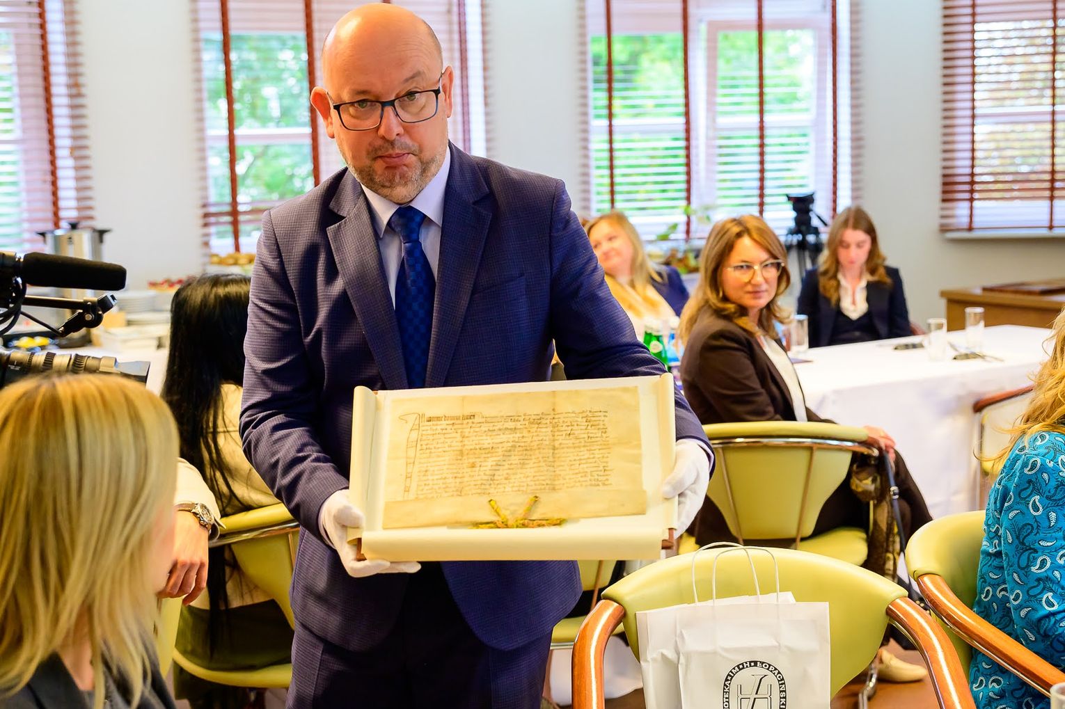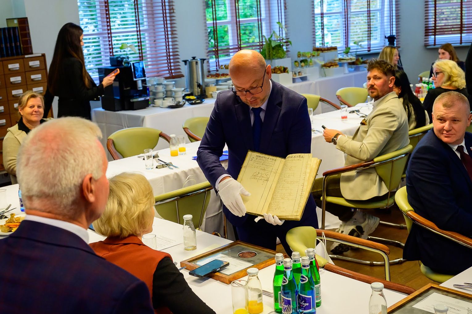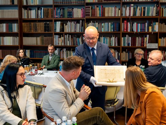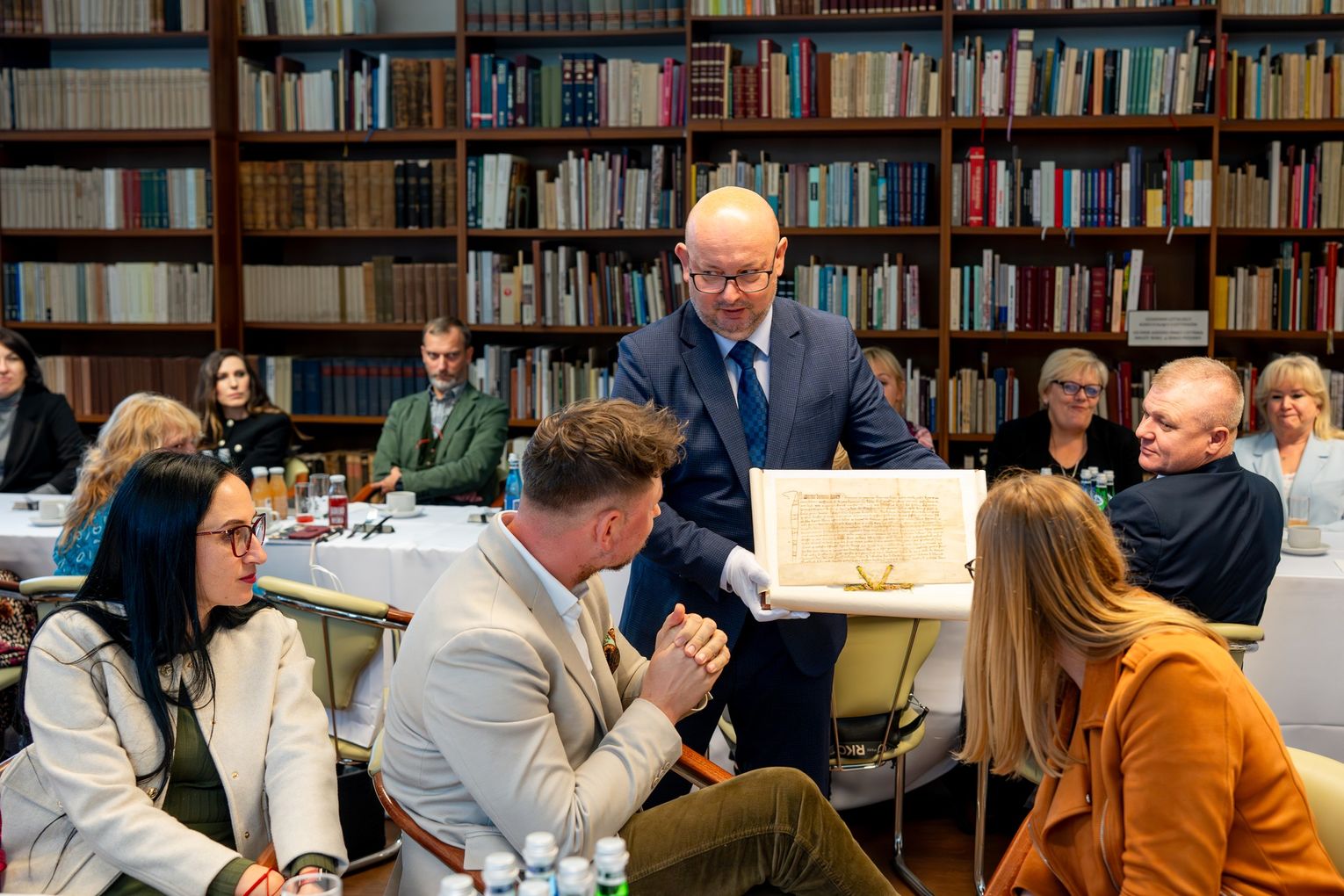 Po oficjalnym spotkaniu zorganizowano pokaz zbiorów specjalnych, który poprowadził dr Grzegorz Figiel - Zastępca Dyrektora WBP ds. Merytorycznych.