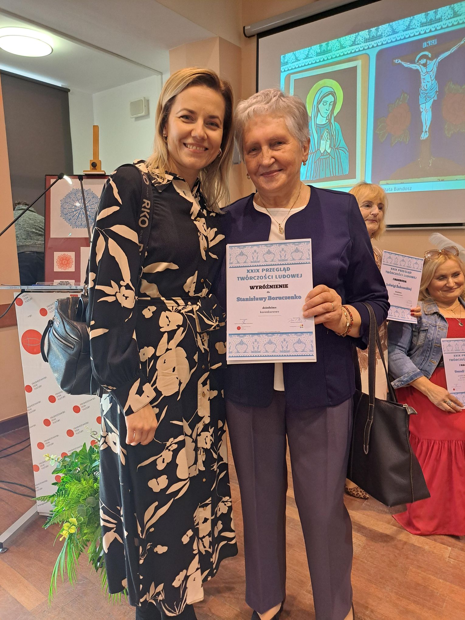 W konkursie wzięła udział twórczyni ludowa z Fajsławic Pani Stanisława Boruczenko, która w kategorii koronkarstwo zdobyła wyróżnienie od jury za swoje prace. Naszej twórczyni towarzyszyła podczas wydarzenia Dyrektor Gok Fajsławice Pani Ewelina Mazur. Pani Stanisławie jeszcze raz bardzo serdecznie gratulujemy i życzymy dalszych sukcesów oraz niegasnącej pasji do tworzenia.