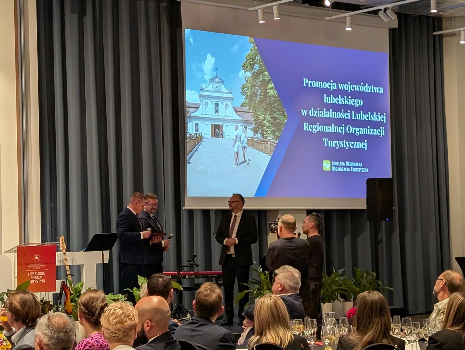 Podczas uroczystej Gali o działaniach zrealizowanych w 2025 przez Lubelską Regionalną Organizację Turystyczną i funkcjonujących w strukturach LROT Informacja turystyczna w Lublinie i Lubelskie Convention Bureau opowiedzieli Prezes LROT Karol Łukasik i Wiceprezesi LROT Marcin Kania i Jacek Bełz.