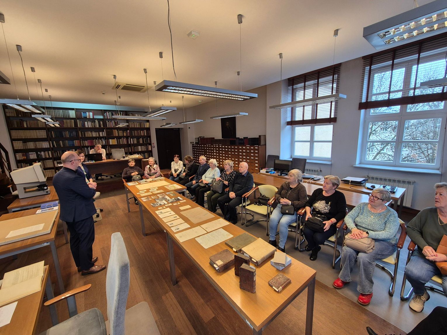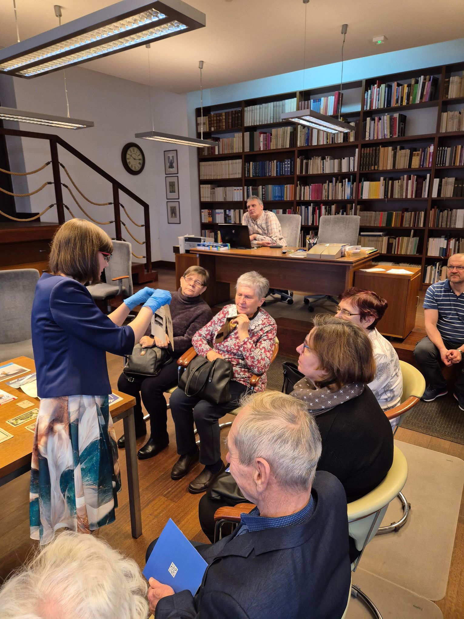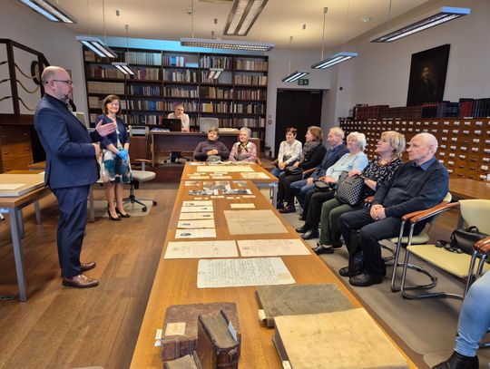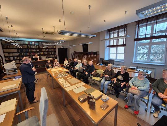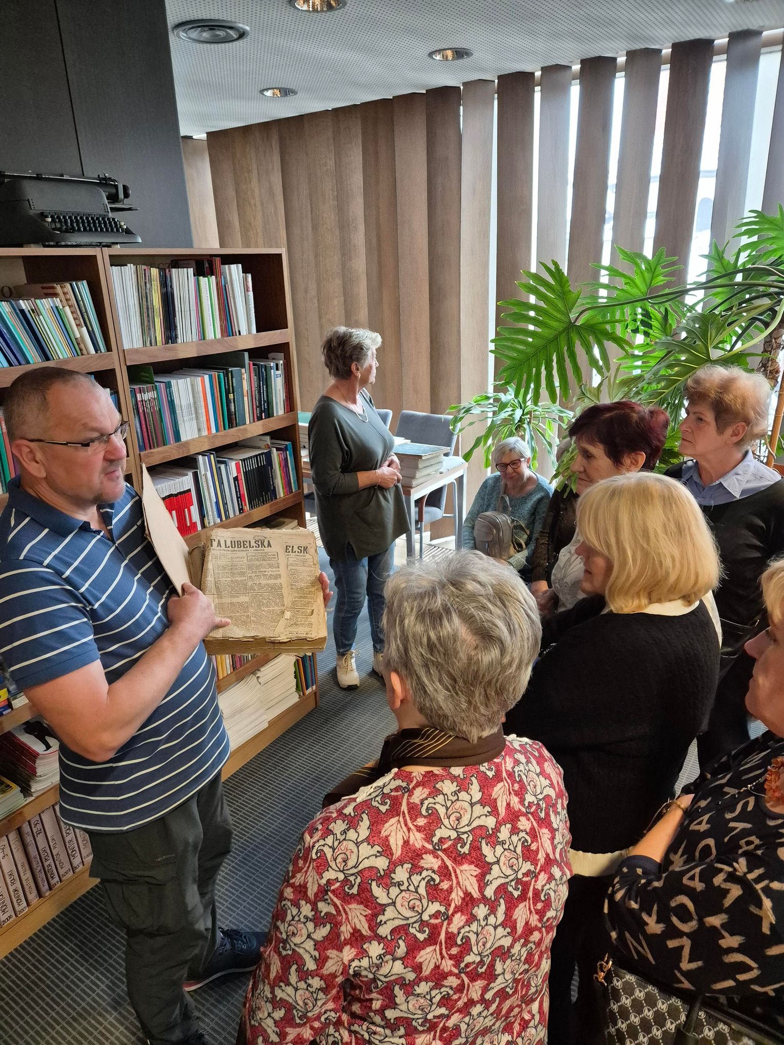 Podczas wizyty uczestnicy mieli okazję zobaczyć zbiory specjalne – wyjątkowe dokumenty, starodruki i materiały archiwalne, które w fascynujący sposób zaprezentowała Pani Katarzyna Podkowińska. Jej opowieści pozwoliły zajrzeć w głąb historii regionu oraz poznać tajemnice najcenniejszych bibliotecznych eksponatów, które na co dzień nie są dostępne dla szerokiej publiczności.