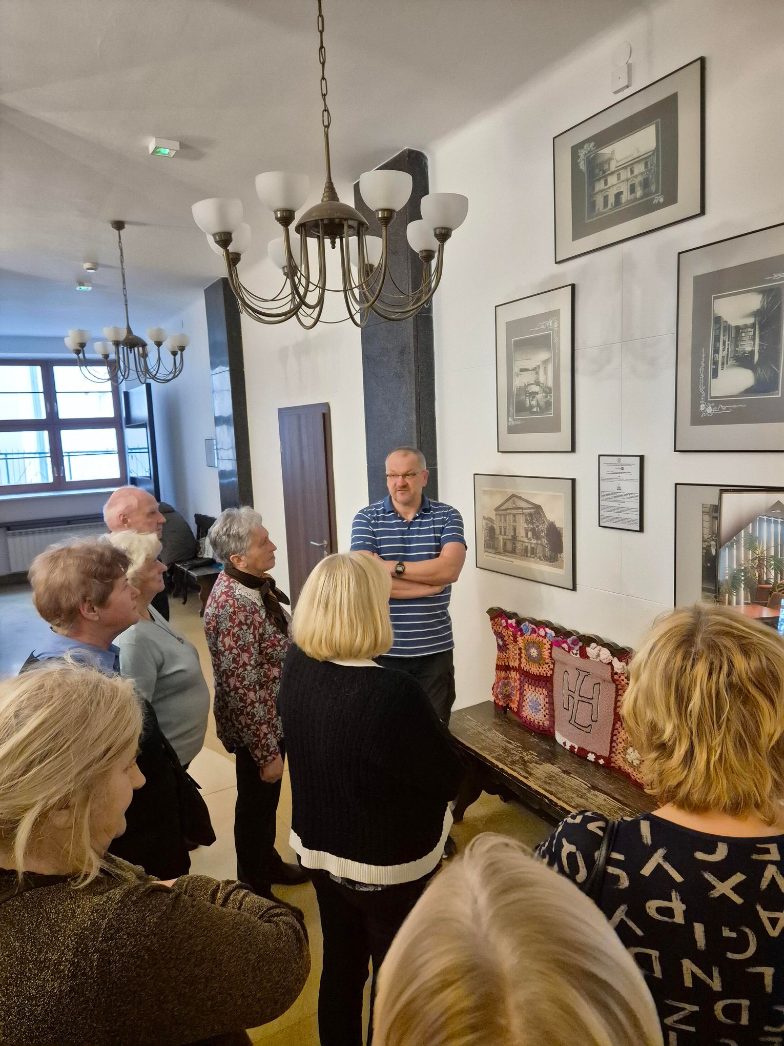 Kolejnym punktem programu było zwiedzanie całej biblioteki pod opieką Pana Krzysztofa Chachaja. Seniorzy poznali funkcjonowanie poszczególnych działów, zajrzeli do przestrzeni magazynowych i dowiedzieli się, jak wygląda praca nowoczesnej instytucji kultury. Było to spotkanie pełne odkryć, ciekawostek i inspiracji – prawdziwa podróż do świata książki w zupełnie nowym wymiarze.