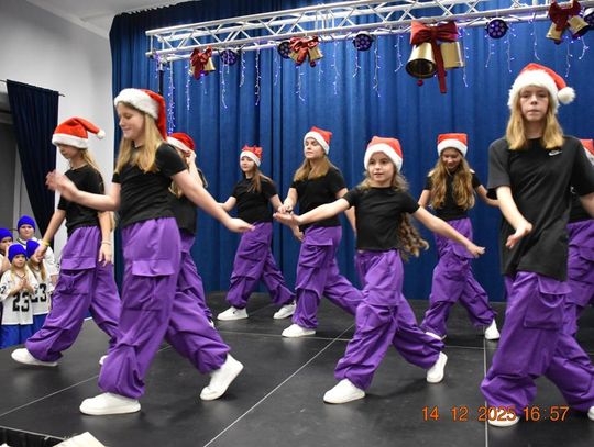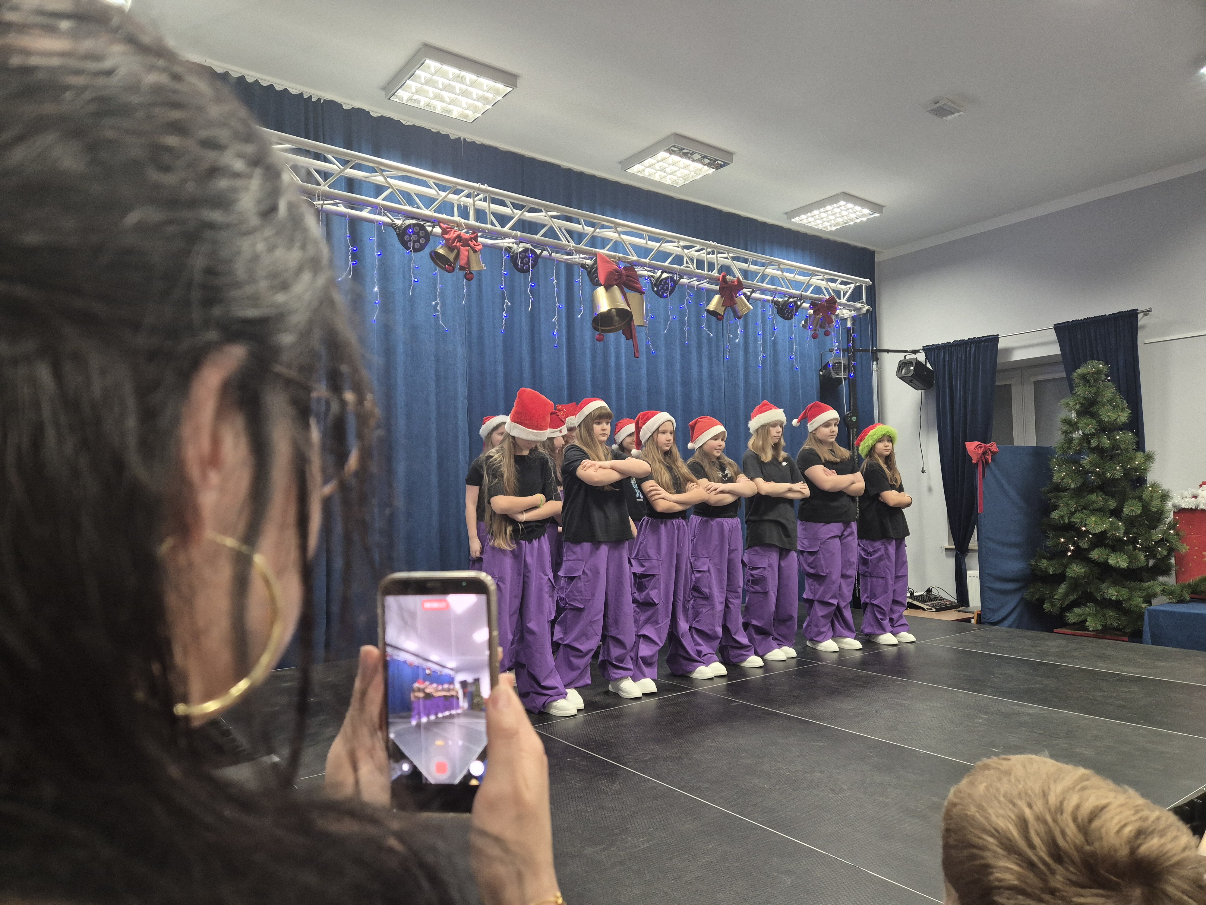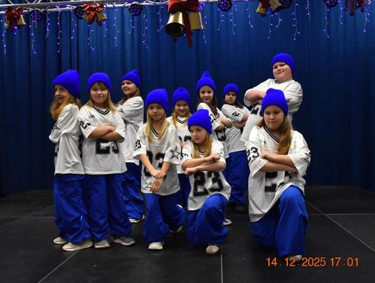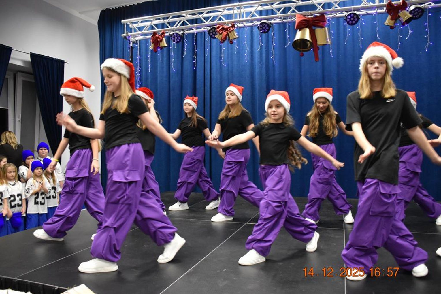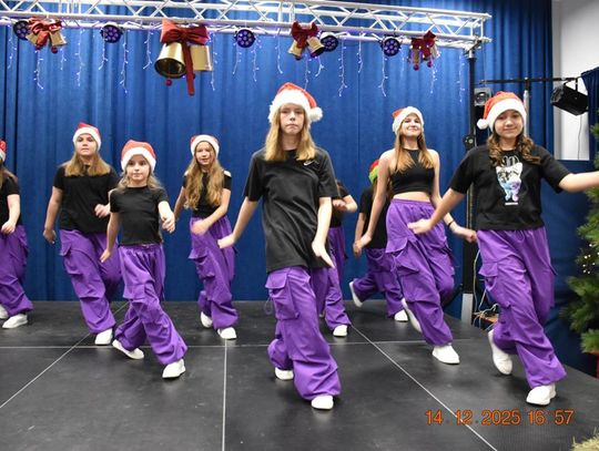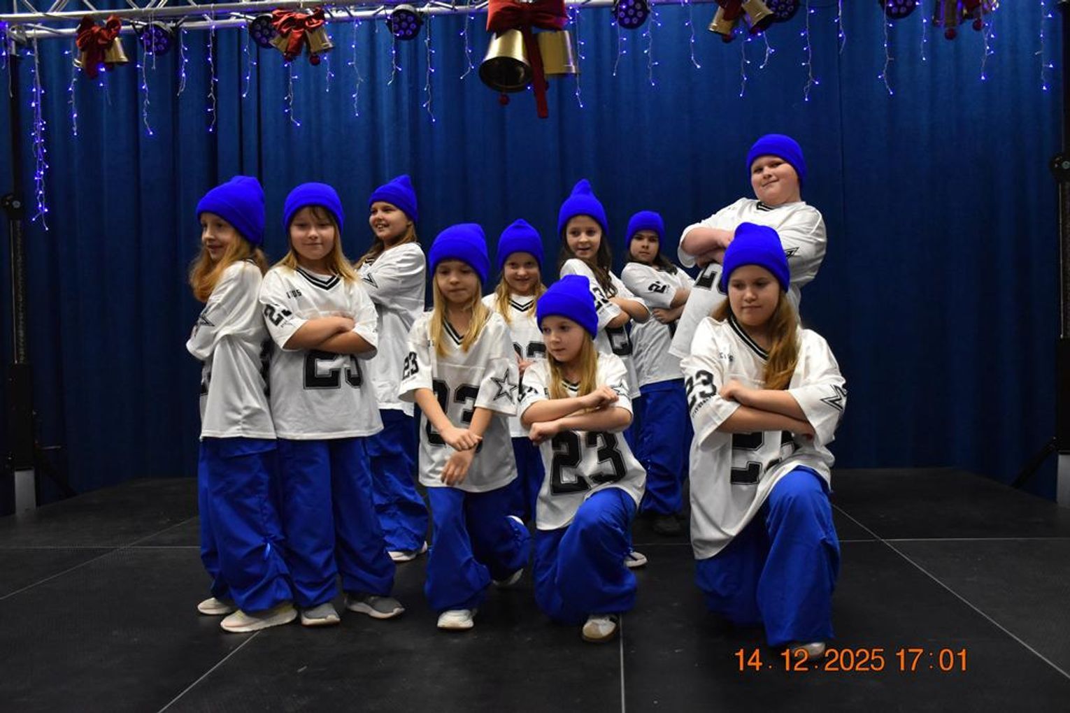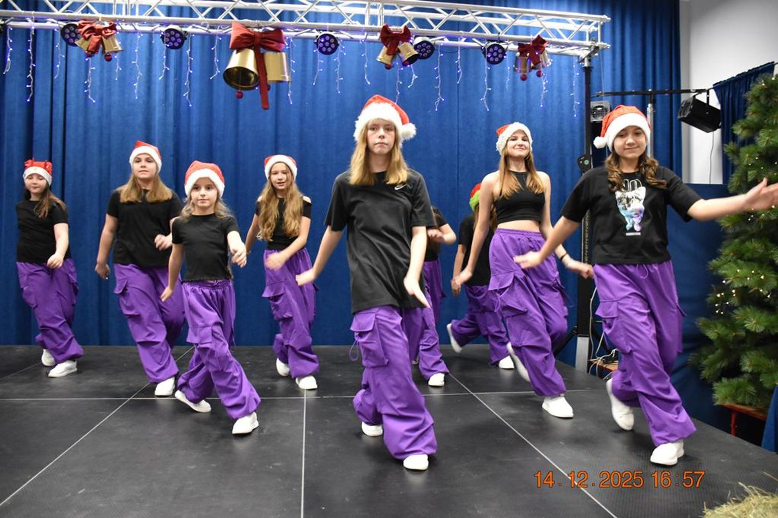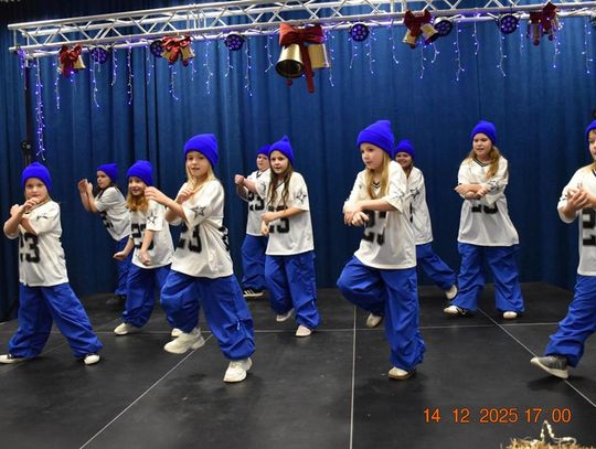 Pierwszy występ w nowych strojach młodzi tancerze mieli podczas kiermaszu świątecznego w GOK, który odbył się 14.12.2025 r.