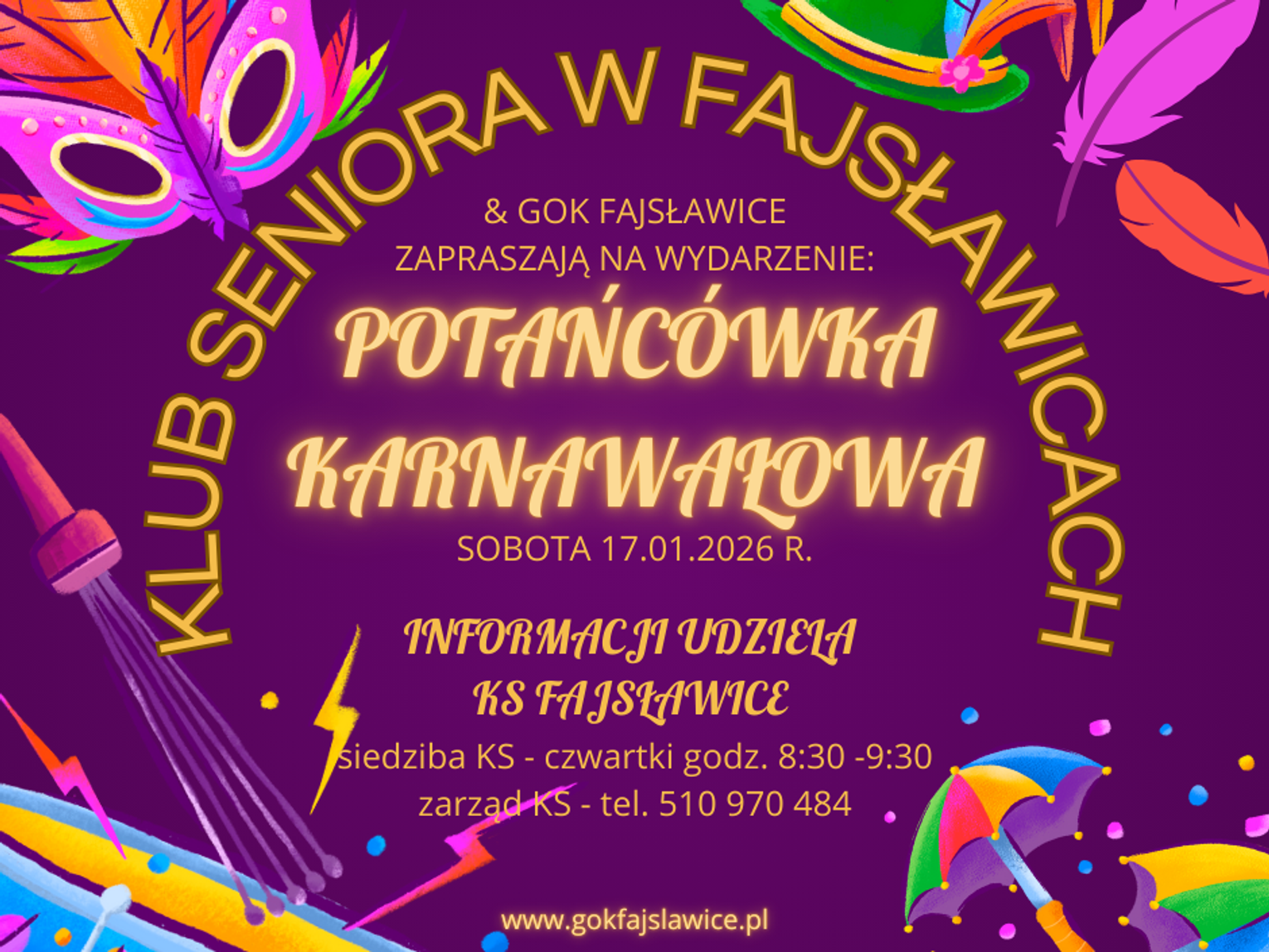 Serdecznie zapraszamy do wspólnej zabawy i świętowania karnawału w Fajsławicach!