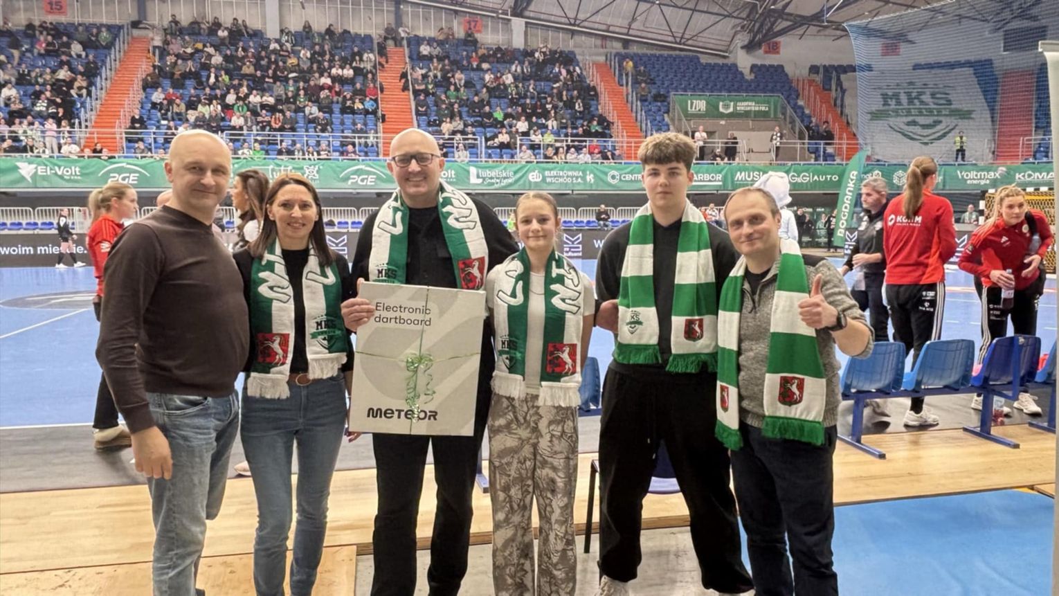 Sporym zaskoczeniem okazał się fakt, iż grupa z Fajsławic była najliczniejszą reprezentacją dzieci i młodzieży ze szkół obecnych podczas meczu, w wyniku czego reprezentanci odebrali nagrodę za tak liczne przybycie 👏🤩