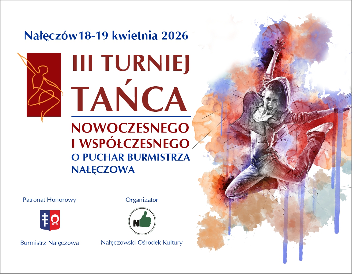18-19.04.2026 (sobota - niedziela) od godz. 9:00 w Szkole Podstawowej im. S. Żeromskiego 17 A w Nałęczowie odbył się III Turnieju Tańca Nowoczesnego i Współczesnego o Puchar Burmistrza Nałęczowa w którym wzięły udział formacje taneczne, duety oraz soliści z całego naszego województwa.