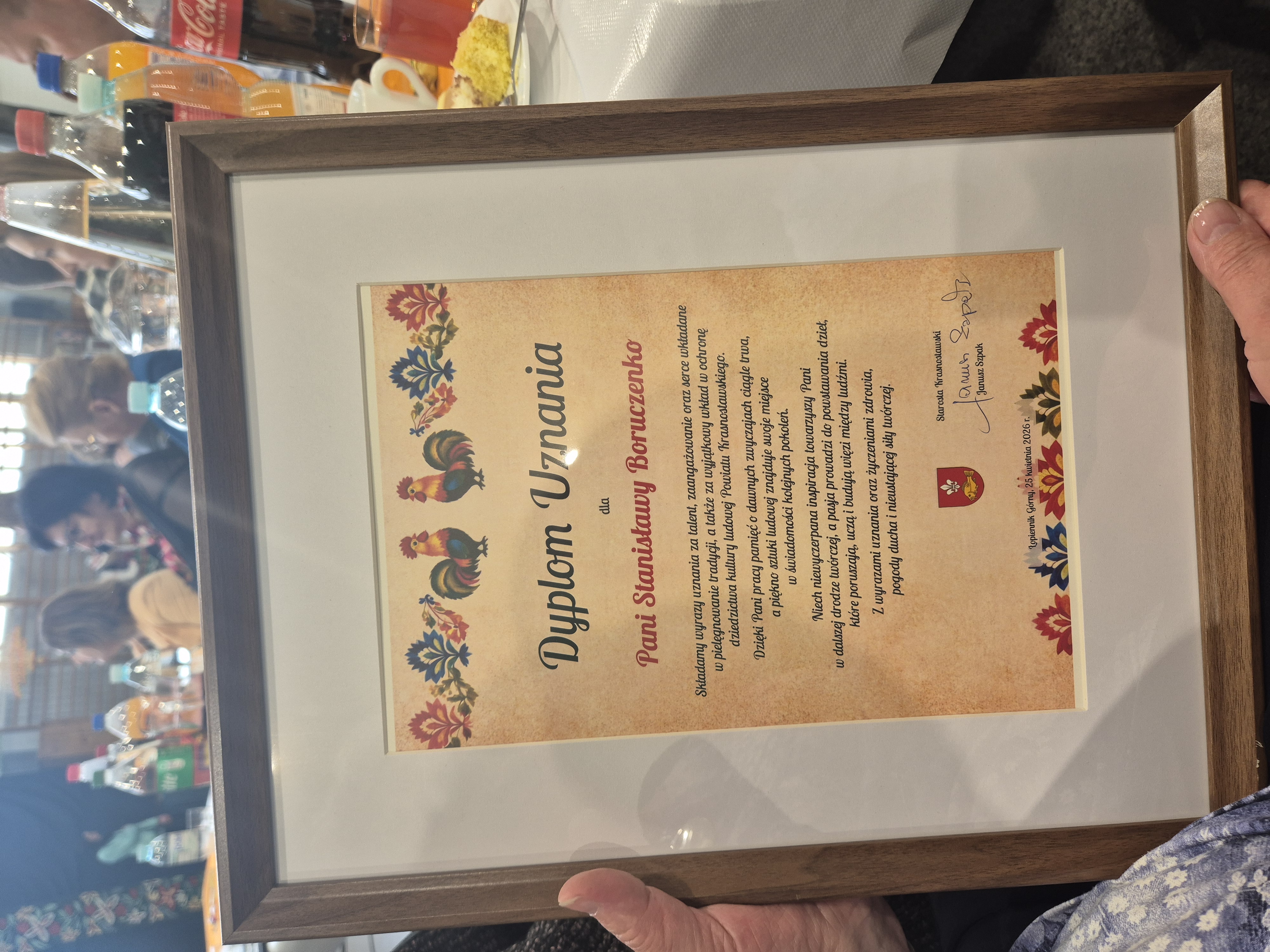 Istotnym punktem programu było wręczenie odznaczeń dla twórców ludowych oraz dyplomów uznania. Starosta Krasnostawski Pan Janusz Szpak uhonorował dyplomem uznania 6 osób m.in. Panią Stanisławę Boruczenko. Wyróżnienie to stanowi wyraz uznania dla jej wkładu w zachowanie i rozwój tradycji ludowej regionu. W imieniu GOK Fajsławice oraz całej gminnej społeczności, serdecznie gratulujemy Pani Stanisławie tego wyróżnienia i życzymy dalszych sukcesów na swojej twórczej ścieżce!